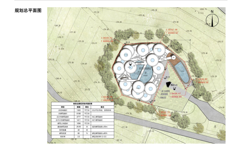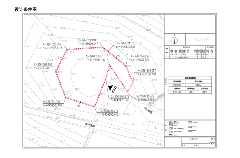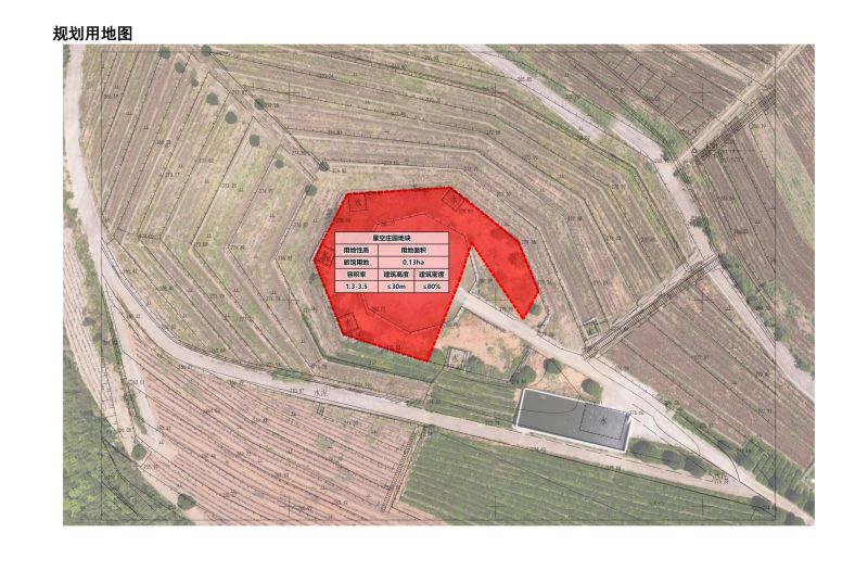 本項目位于洋程村東側星空莊園,地塊總用地面積為1365平方米,用地性質為旅館用地,地塊控制指標為:容積率≤3.50、建筑高度≤30米、建筑密度≤80%。