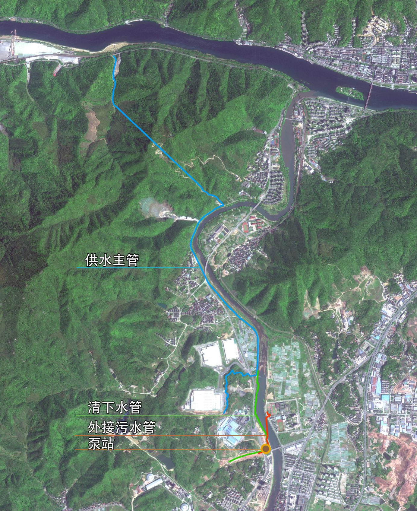 (一)水產(chǎn)業(yè)園供水主管。從沁雅山莊河對(duì)岸已建的DN800主管閥門(mén)接口接出DN600管接入水產(chǎn)業(yè)園區(qū)。管道沿著后坑塢,穿過(guò)現(xiàn)狀的隧道,接著沿著壽昌江西岸布置,最終接入水產(chǎn)業(yè)地塊,管道總長(zhǎng)度約5.5km。