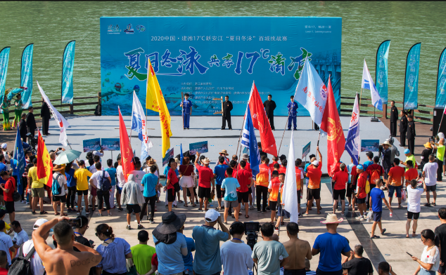 8月17日上午9時許,隨著“嘀”的一聲哨響,2020中國·建德17℃新安江“夏日冬泳”百城挑戰(zhàn)賽正式開賽,岸邊的勇士們紛紛躍入水中,接受17℃新安江水的挑戰(zhàn)。