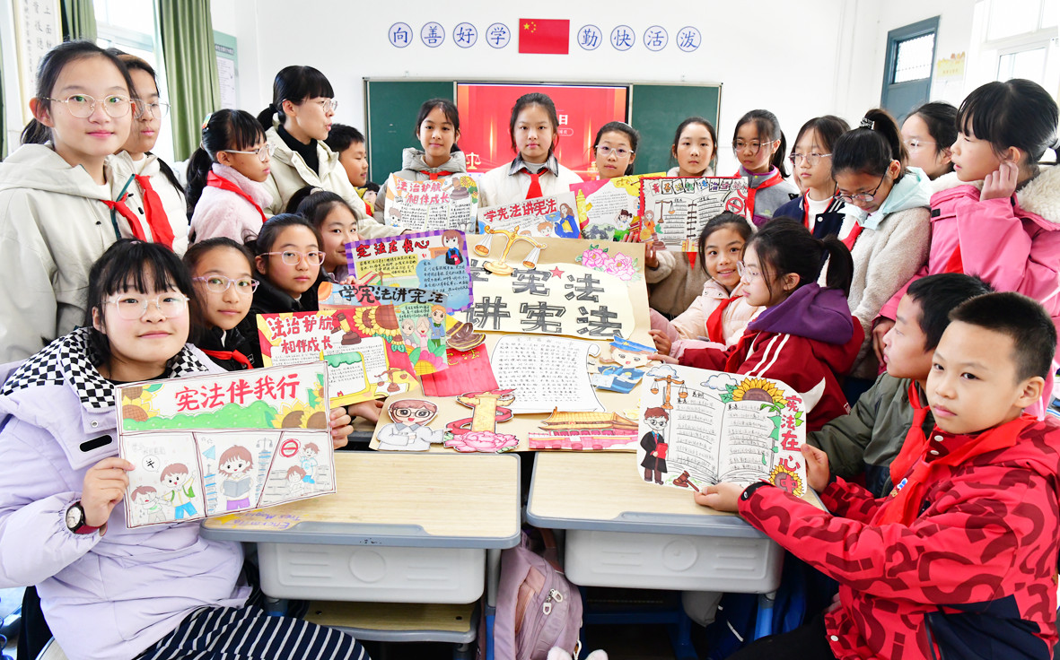 12月4日是第12個“國家憲法日”。當(dāng)天,明鏡小學(xué)開展“憲法在我心中”思政課堂活動,學(xué)生們在老師指導(dǎo)下,通過制作手抄報、觀看憲法視頻、閱讀相關(guān)書籍等方式,學(xué)習(xí)憲法知識,增強(qiáng)法治觀念,弘揚憲法精神。