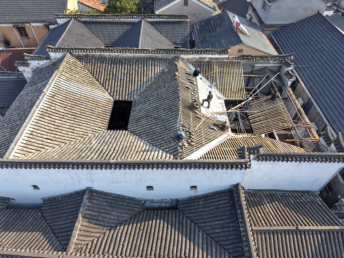 位于壽昌鎮(zhèn)的蔣宅歷史悠久,是當?shù)匾惶幹匾墓沤ㄖ?。由于年久失修,蔣宅部分結(jié)構(gòu)設(shè)施已老化腐爛,存在安全隱患。自11月初開始,施工單位根據(jù)“修舊如舊”原則,對蔣宅進行整體修繕,預(yù)計今年底完工。圖為工人正在修繕蔣宅破損老化的木梁、樓板、瓦片、磚塊等設(shè)施。