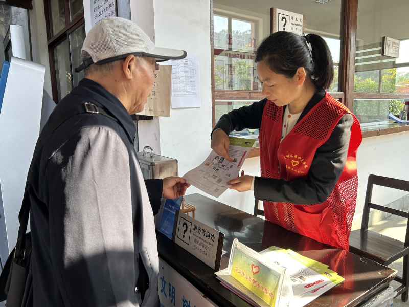 志愿者向游客普及文明旅游、安全旅游的重要性和必要性。