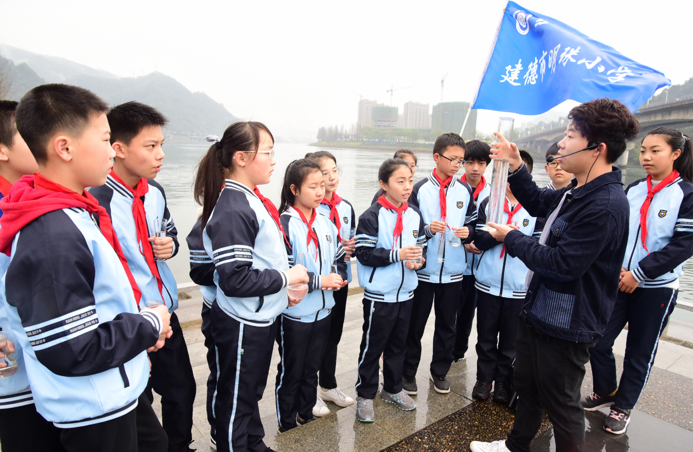 3月21日,明珠小學科學社團十多名環(huán)保小衛(wèi)士在科學老師謝寅波的帶領(lǐng)下,來到新安江畔城東段的江岸邊,一起用器具采集水樣,觀察水體生態(tài),向市民宣傳節(jié)水用水的環(huán)保常識,共同呵護母親河,用實際行動迎接3月22日“世界水日”的到來。