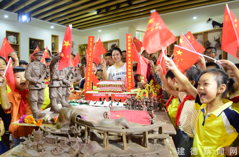 9月16日,明珠小學(xué)的學(xué)生在老師帶領(lǐng)下,來到陶藝室里參觀陶藝社團(tuán)近期創(chuàng)作的陶藝作品。作品體現(xiàn)了天安門廣場、高鐵時(shí)代、紅色歷史建筑等元素,一件件栩栩如生。在場的同學(xué)們心潮澎湃,各個(gè)揮舞五星紅旗,歡呼雀躍,祝福偉大祖國繁榮昌盛,明天更美好。
