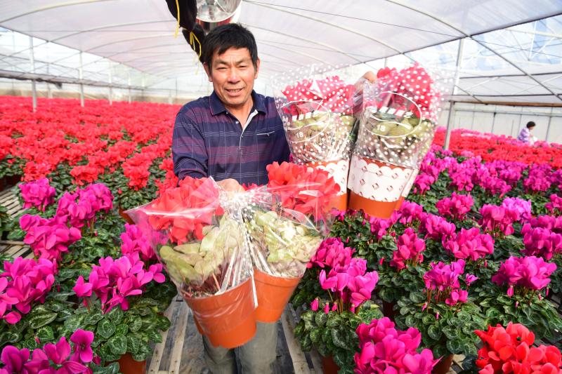 隨著春節(jié)臨近,在航頭鎮(zhèn)隆泰園藝場溫室大棚里,2萬多盆紅色、粉色、紫色的仙客來精品鮮花一派姹紫嫣紅、色彩斑斕,每天都有3000多盆俏銷上海、江蘇及浙江等省內(nèi)外花卉市場,每盆價格在20-30元之間,經(jīng)濟效益十分可觀。