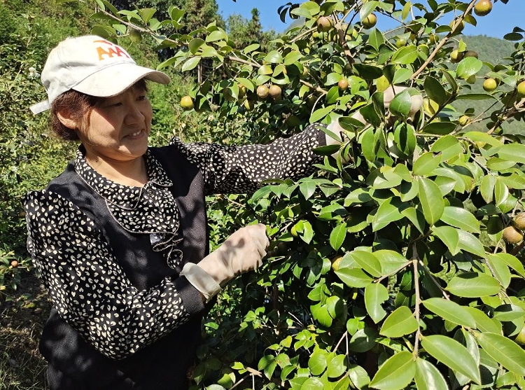 圖為航頭鎮(zhèn)曹源村農(nóng)戶在釆摘山茶籽。