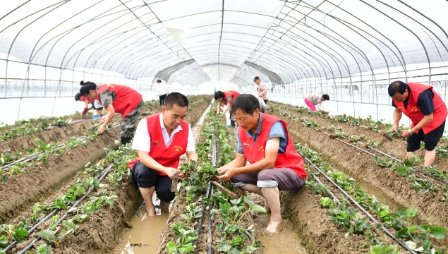 隨著杭州亞運會以及國慶、中秋佳節(jié)的臨近,鮮花銷售迎來旺季。連日來,航頭鎮(zhèn)精品鮮花種植基地忙著對3萬多盆一品紅鮮花進行后期培育管理,力爭培育出更好的精品鮮花,用于滿足接下來花卉市場需求。圖為花農正在基地里對一品紅鮮花進行培育管理。