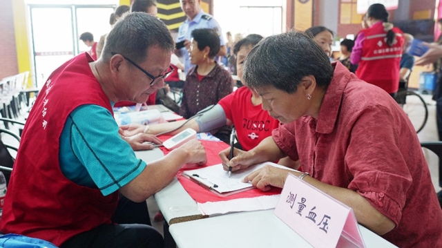 與此同時(shí),從泄洪水庫到山塘溝渠,再到受災(zāi)農(nóng)田,一抹志愿紅也流動(dòng)在老年人的房前屋后。近日持續(xù)的強(qiáng)降雨給老人們的出行帶來不便,志愿者們?yōu)榇謇锿饶_不便的老人送醫(yī)上門、送藥上門,“最近身體怎么樣,有沒有不舒服?”葛塘村村醫(yī)、志愿者們走進(jìn)高齡老人、獨(dú)居老人家中,關(guān)心老年村民身體狀況,了解到村民健康需求,為他們送上基礎(chǔ)健康檢查。