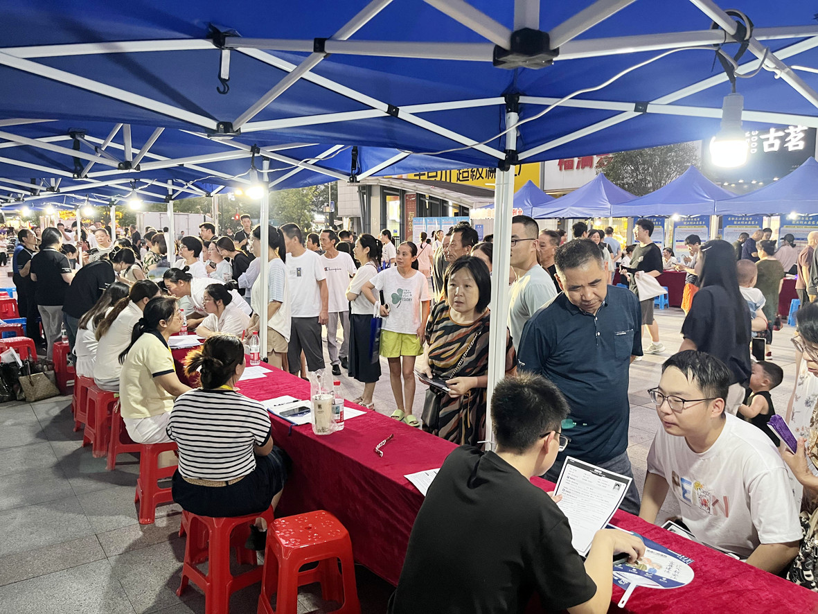 夜幕降臨,新安江文化廣場燈光璀璨,不同于傳統(tǒng)招聘會(huì)嚴(yán)肅刻板的氛圍,這里沒有僵化的展位隔斷,也沒有冗長的流程儀式。企業(yè)HR們帶著滿滿的崗位需求,與前來求職的青年人才在廣場上面對面交流。求職者們從詢問基礎(chǔ)崗的成長空間,到探討技術(shù)崗的核心挑戰(zhàn),整個(gè)過程輕松自在,正如他們所說:“就像逛夜市選美食一樣在攤位挑工作?!?/p>