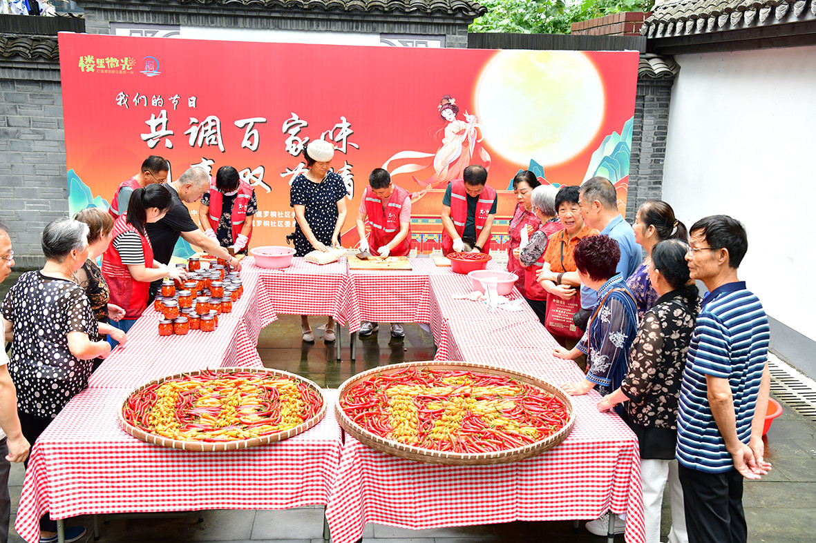 中秋逢國慶,家國情更濃。9月24日,新安江街道羅桐社區(qū)開展以“共調(diào)百家味 同享雙節(jié)情”為主題的辣椒醬制作迎“雙節(jié)”活動,社區(qū)居民們用不同顏色的辣椒在竹匾里擺出“國慶”兩字的造型,在寓意日子紅紅火火的辣椒醬制作過程中增進鄰里感情,在凝聚社區(qū)溫暖與團圓的喜慶氛圍中共同祝愿祖國繁榮昌盛、國泰民安。