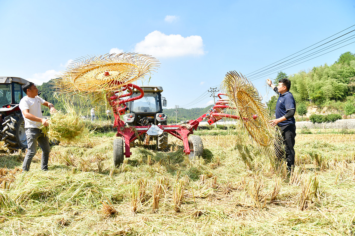 近日,在位于欽堂鄉(xiāng)的杭州心之所向農(nóng)創(chuàng)文旅有限公司里,農(nóng)技員操控著新配置的摟草機(jī)、抓草機(jī)和打捆機(jī),在已經(jīng)完成收割的稻田里高效地將散落的秸稈摟集絞條、編織成毯、壓實(shí)打捆,統(tǒng)一裝運(yùn)離田,回收加工成飼料、肥料、燃料等。據(jù)了解,該公司添置的這批新型農(nóng)機(jī)不僅用于公司承包田,還為全市6個(gè)鎮(zhèn)街的種植戶開(kāi)展免費(fèi)的秸稈回收利用服務(wù)。
