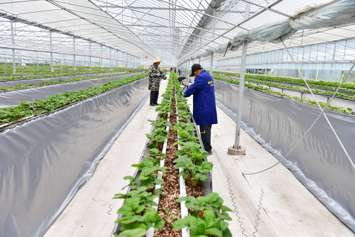 10月21日,記者在浙江睦府農業(yè)發(fā)展有限公司草莓精品園的連幢鋼架大棚里看到,管護人員正在對種植在立架上的草莓秧苗進行施肥、鋪設銀黑膜等培育管理,確保草莓正常生長、品質提升,實現(xiàn)增產增收。