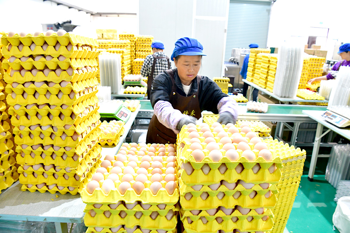 10月22日,記者在位于航頭鎮(zhèn)的建德市雞蛋分揀中心生產(chǎn)車間看到,工人們正在機(jī)械分揀機(jī)旁包裝新鮮雞蛋,通過線上線下渠道銷往各地市場,日銷量達(dá)五六噸。自去年年底開始,該分揀中心通過自動化機(jī)械設(shè)施,對各類雞蛋進(jìn)行統(tǒng)一分揀,不僅大大地提高了勞動效率,還帶動了周邊剩余勞力在家門口就業(yè)增收。