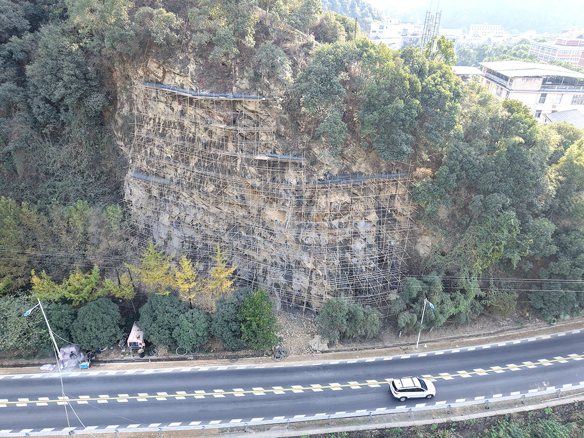 日前,記者在330國道洋溪街道高畈路段一側(cè)看到,工人們正在對(duì)一處公路邊坡進(jìn)行生態(tài)修復(fù)治理,消除坍塌滾石等安全隱患,保障群眾出行安全。