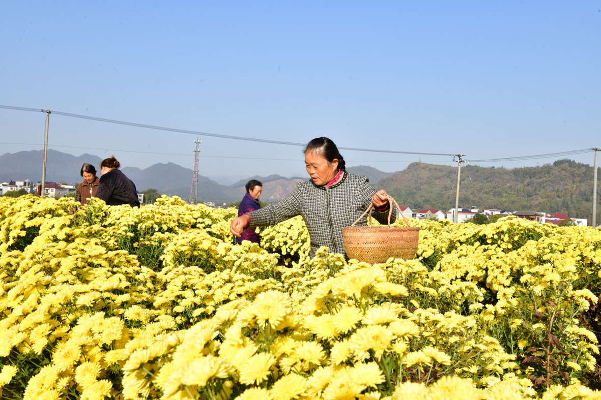 11月27日,在大同鎮(zhèn)富塘村菊花種植基地內(nèi),花農(nóng)們穿梭于金黃色的花海中,忙著采摘最后一茬小野菊。近年來,該村通過“黨支部+家庭農(nóng)場+農(nóng)戶”模式,形成了種植、加工、銷售一條龍生產(chǎn)經(jīng)營模式,不僅幫助當(dāng)?shù)卮迕裨诩议T口實(shí)現(xiàn)就業(yè)增收,也為發(fā)展“美麗經(jīng)濟(jì)”、助力鄉(xiāng)村共富注入新活力。