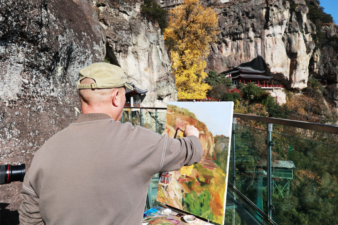 近日,中國(guó)寫生會(huì)與我市正式簽約,在嚴(yán)州古城成立首個(gè)直屬寫生創(chuàng)作基地。11月28日,來(lái)自中國(guó)寫生會(huì)西安分會(huì)的五位知名畫家作為基地首批特邀藝術(shù)家,赴我市大慈巖景區(qū)進(jìn)行實(shí)地寫生,標(biāo)志著該基地開(kāi)啟首次寫生創(chuàng)作活動(dòng)。