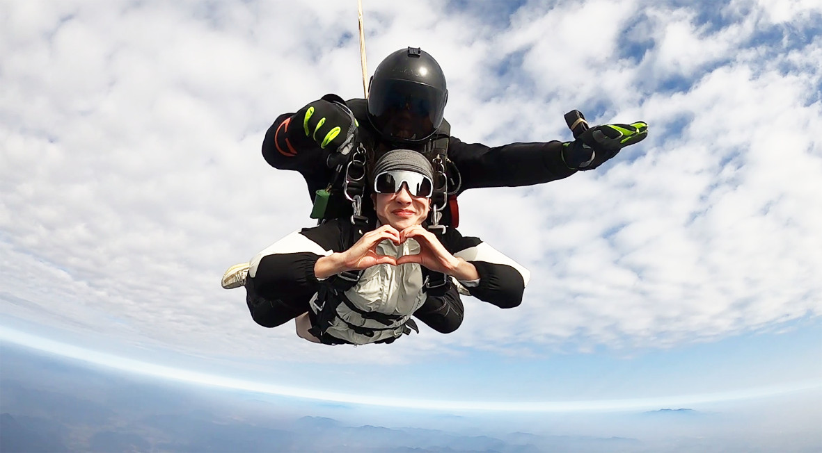 往年這個時候,跳傘項目已經接近尾聲了。今年跳傘基地調整了運營策略,只要天氣條件允許,冬季也繼續(xù)對外開放。這一調整出乎意料地受到了市場歡迎,冬天跳傘空氣更清澈,能見度更好,俯瞰大地很震撼,吸引了來自全國各地的年輕人體驗這項高空運動。準備區(qū)域內,工作人員正在細心地為游客檢查裝備,講解注意事項。由于冬天溫度低,基地特別準備了加厚的跳傘服、手套、防風面罩等保暖裝備。除此之外,個性化服務也別具特色,生日橫幅、蛋糕模型、加油口號等道具也讓高空跳傘更有儀式感。做好準備工作,大家懷著激動的心情登上飛機,沒一會兒,五彩傘花在天空中次第綻放,成為一道獨特的風景線。